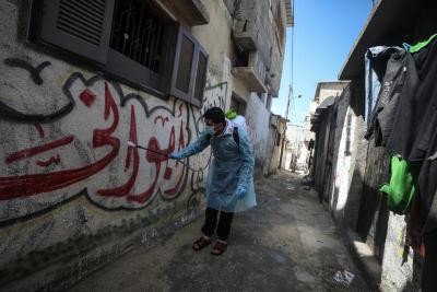 نظّمت حركة المقاومة الإسلامية "حماس"حملة "من بيت لبيت من أجل سلامتكم" لتعقيم عدد من المنازل والمؤسسات والمرافق العامة، في مخيم الشاطئ للاجئين ، غرب مدينة غزة، وذلك ضمن الإجراءات الاحترازية للوقاية من فيروس "كورونا" المستجد.