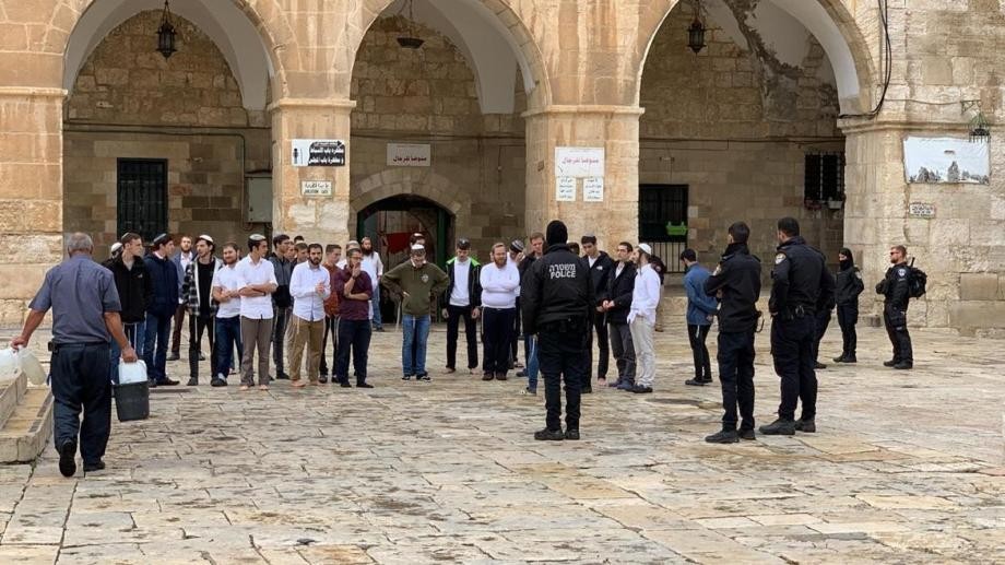 وبينت أن مجموعات متتالية من المستوطنين اقتحمت المسجد من باب المغاربة، ونظمت جولات استفزازية في ساحاته، وتلقت شروحات عن "الهيكل" المزعوم، وأدت طقوساً تلمودية في منطقة باب الرحمة شرقي الأقصى، متجهة نحو باب السلسلة كالمعتاد.