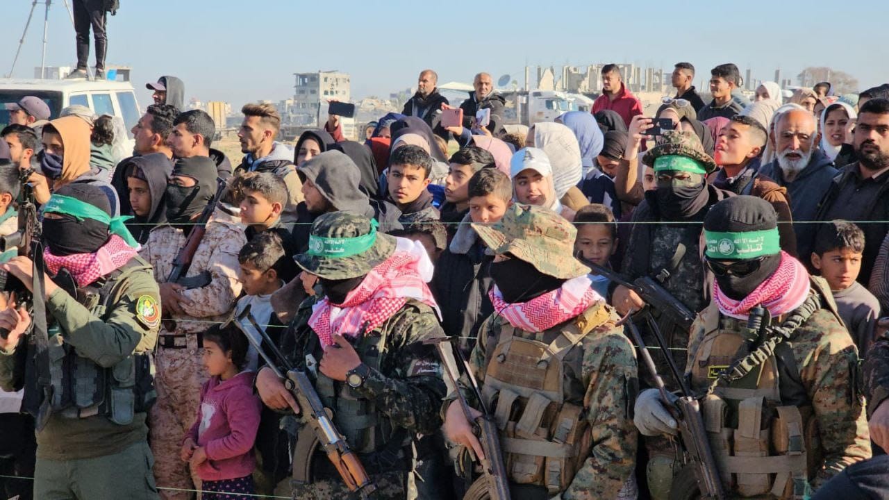 وصباح اليوم أفرجت كتائب الشهيد عز الدين القسام الجناح العسكري لحركة المقاومة الإسلامية "حماس"، عن 3 أسرى إسرائيليين، عبر الصليب الأحمر الدولي، في مدينة خانيونس جنوبي قطاع غزة.