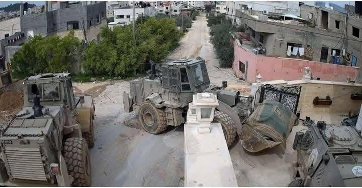 وفي سياق متصل، اقتحمت قوات الاحتلال بأعداد كبيرة، مدعومة بالجرافات، الحي الشرقي من مدينة جنين ودمرت عددًا من الشوارع.