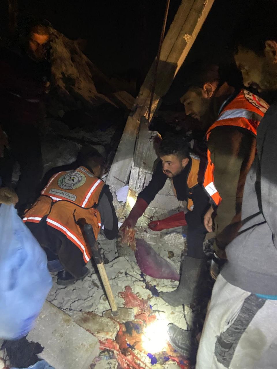 في محافظة شمال غزة، تمكنت الطواقم من انتشال جثمان طفل شهيد وأشلاء من تحت أنقاض منزل عائلة "أبو نادي" الذي تعرض لقصف مباشر في منطقة الكرامة.
