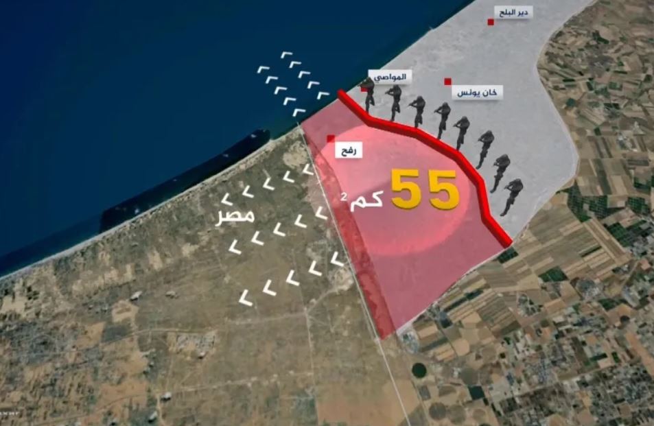وهذه الخطة كشف عنها وزير الدفاع الإسرائيلي يسرائيل كاتس، موضحا أنها تقوم على إنشاء منطقة مغلقة بمدينة رفح بين محوري موراغ وفيلادلفيا جنوبي القطاع، وتستهدف بداية نقل نحو 600 ألف فلسطيني إليها، مع إقامة 4 مراكز لتوزيع المساعدات وتديرها منظمات دولية، وسيخضع السكان لعمليات تدقيق أمنية بهدف التأكد من عدم انتمائهم لحركة حماس، وبمجرد دخولهم المنطقة لن يُسمح لهم بالمغادرة.