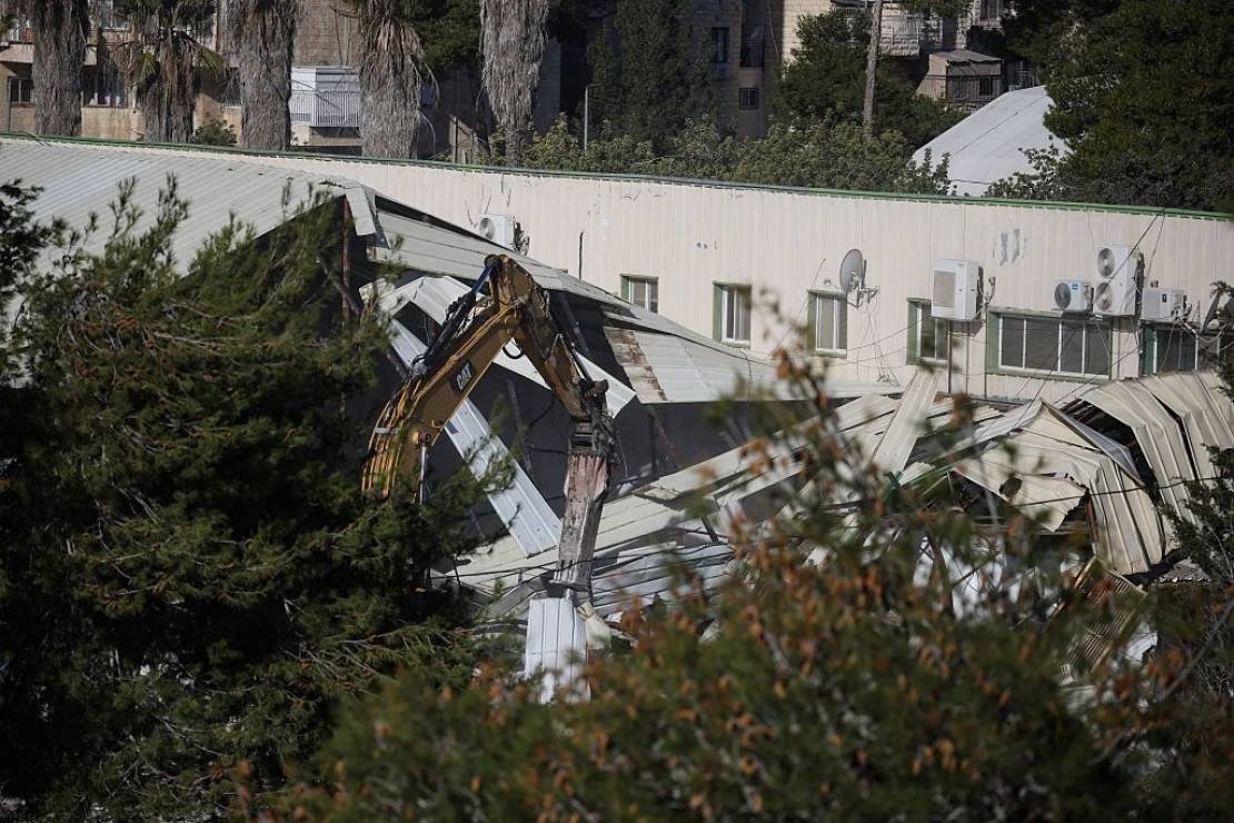وأظهرت صور رفع قوات الاحتلال "العلم الإسرائيلي" داخل مقر وكالة الأونروا بالتزامن مع تنفيذ عملية الهدم.