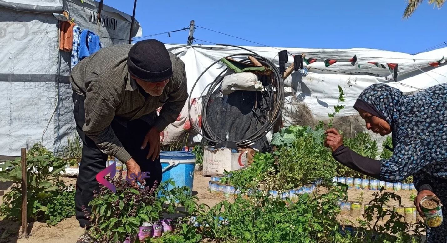 مع اشتداد الحصار وتدمير جيش الاحتلال الإسرائيلي لكافة مقومات الحياة في قطاع غزة المدمر، لجأ الكثير من النازحين الفلسطينيين إلى زراعة ما توفر لهم مساحات صغيرة بين الخيام لتوفير الطعام لأطفالهم.